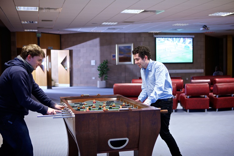 The main common room is where most hall events take place. It has sofas, pool tables, board games, and a projector.