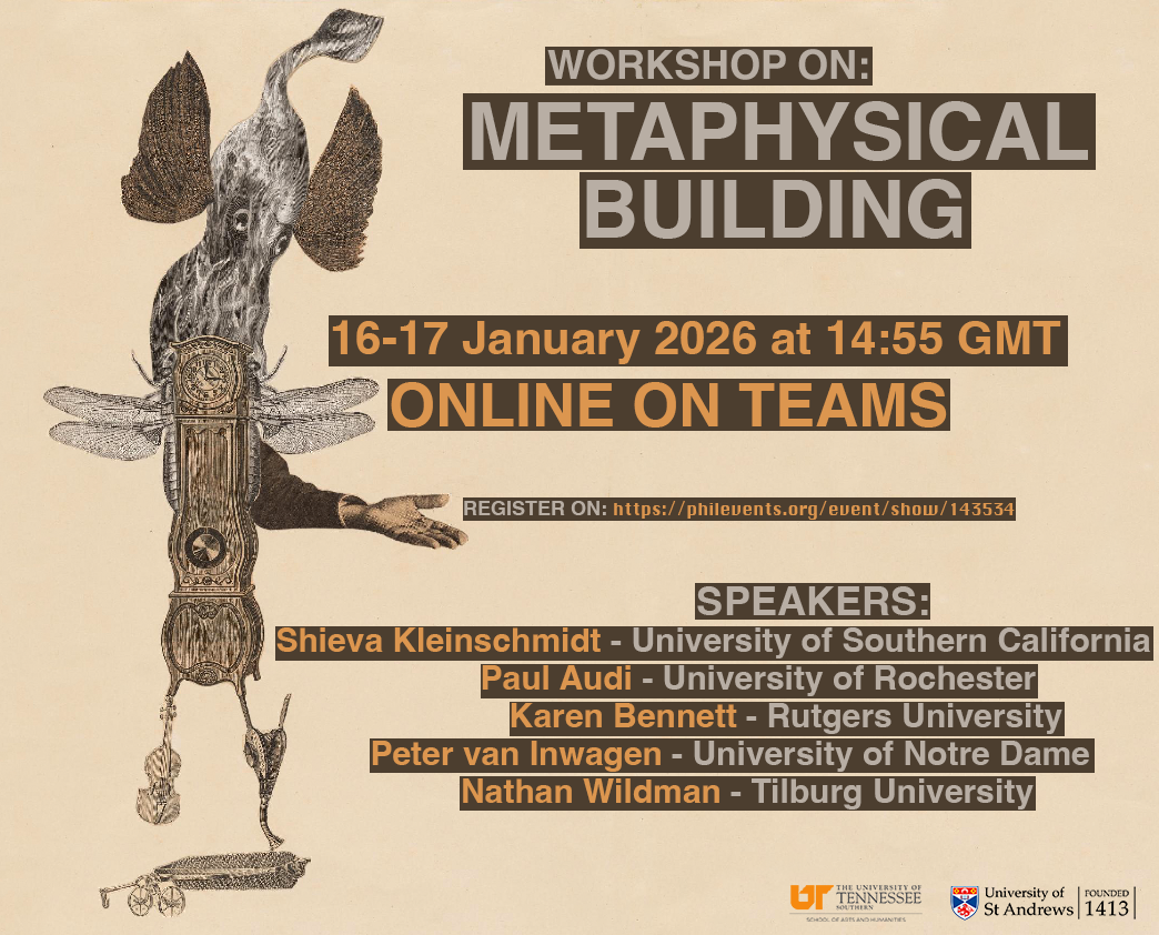 The University of Tennessee Southern’s School of Arts and Humanities and the University of St. Andrews’ Arché Philosophical Research Centre for Logic, Language, Metaphysics, and Epistemology will be hosting a two-day online workshop on the Metaphysics of Building.