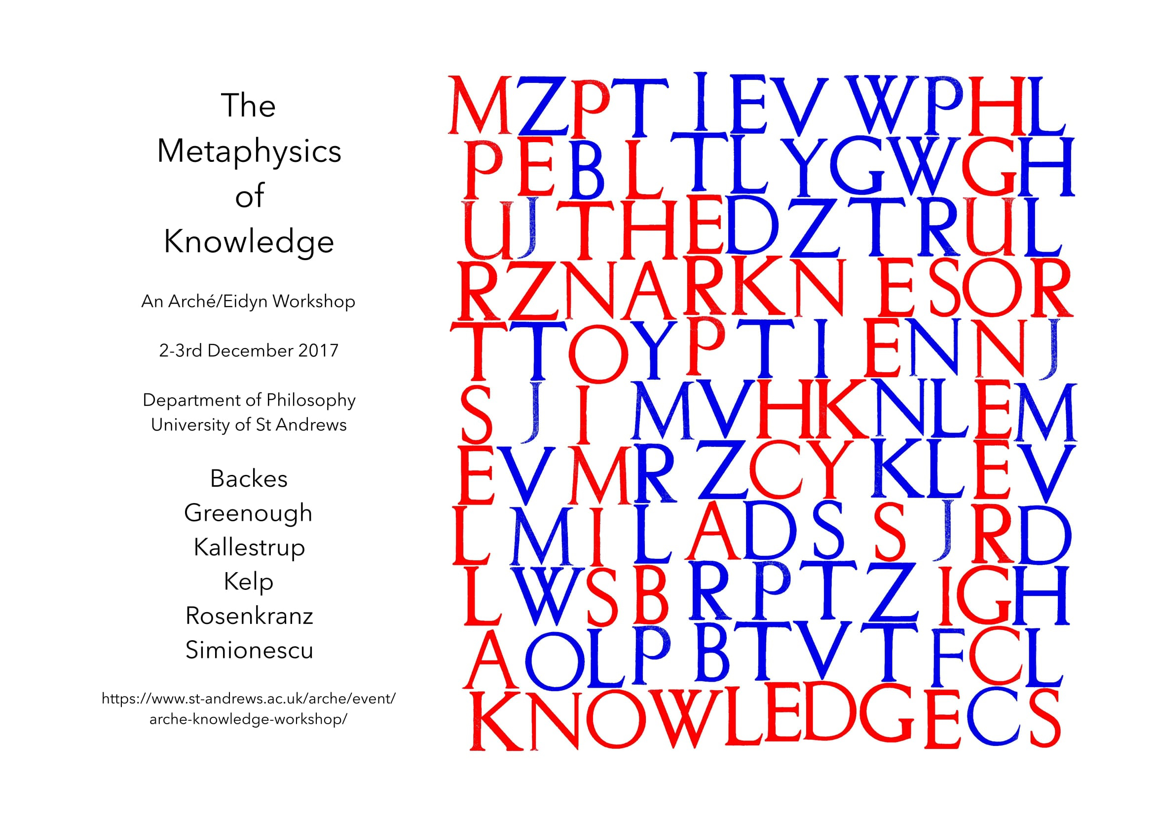 This is the second of two Arche/Eidyn workshops on the metaphysics of knowledge and justification. Schedule Sat 2nd December 09:30-10:00 Morning Coffee 10:00-11:30 Mona Simion:... |