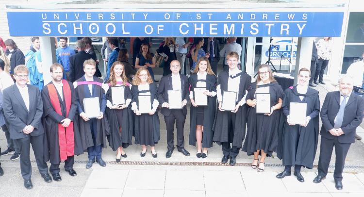A total of 66 students graduated with an Honours degree in chemistry from St Andrews in 2022 as well as 24 with a PhD. After the University graduation ceremony in Younger Hall, this was celebrated with a reception in the School of Chemistry, where the best students were awarded prizes for outstanding achievements.