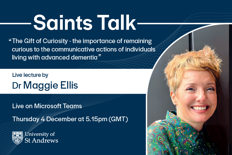 Development is delighted to invite you to the next Saints Talk, which will be given by Dr Maggie Ellis MBE. Dr Ellis' talk is entitled 'The Gift of Curiosity - the importance of remaining curious to the communicative actions of individuals living with advanced dementia'.