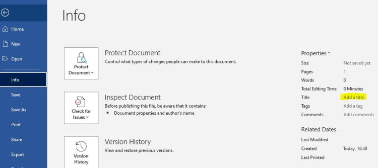 - Give the document a meaningful title. If using Microsoft Word, this has to be set on the Info section of the document.