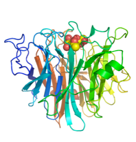 V. cholerae sialidase was once known as the ‘receptor destroying enzyme’ given its ability to remove sialic acids from cell surfaces and inhibiting the binding of the influenza virus. It plays a role in pathogenesis in reducing higher order gangliosides to GM1, the receptor for cholera toxin. The structure reveals a catalytic domain flanked by two carbohydrate-binding modules, one of which binds sialic acid.