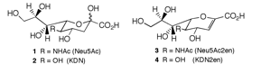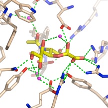 We recently discovered that the A. fumigatus sialidase is a KDNase, and possibly recognises polyKDN. KDN is Neu5Ac with the acetyl group replaced by a hydroxyl. The crystal structures of the enyzme in complex with KDN, an inhibitor and a flourinated substrate have enables capture of the catalytic cycle. This is a collaboration with Margo Moore and Andy Bennet at Simon Fraser, BC, Canada.
