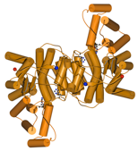 Most TIMs are dimers, but in thermophilic archaea they are tetramers. The P. furiosus TIM has a smaller monomer, and achieves thermostability through shorter loops and a predominantly hydrophobic interaction of two classical dimers to form the tetramer. This study was in collaboration with Mike Danson & David Hough at the University of Bath.