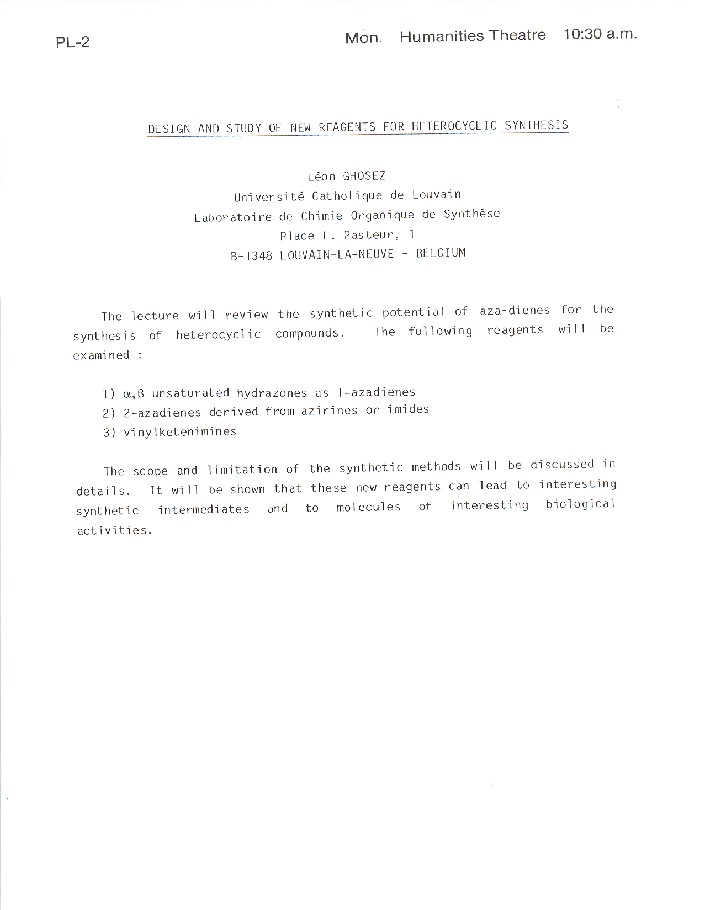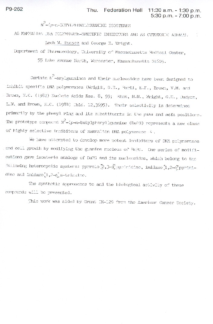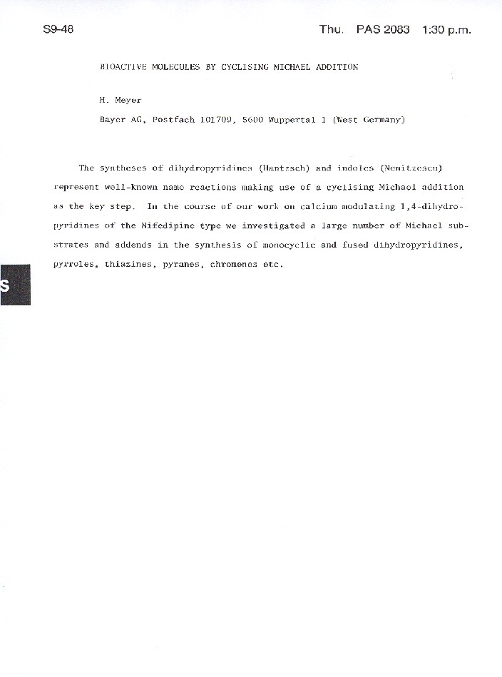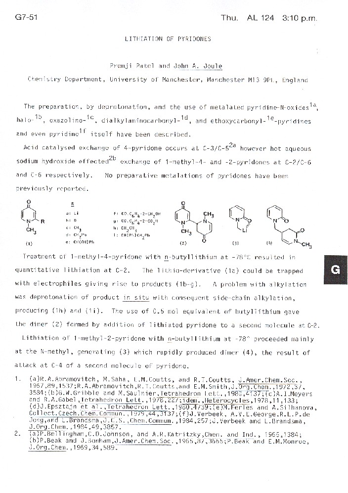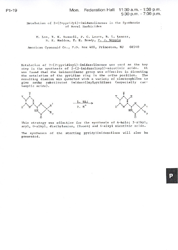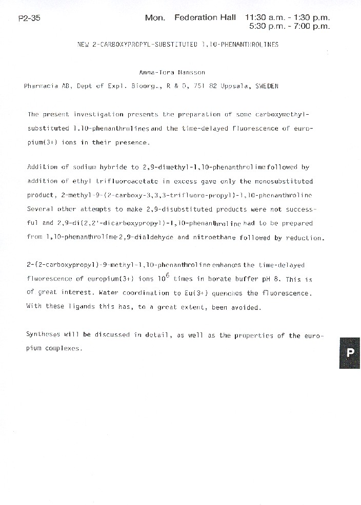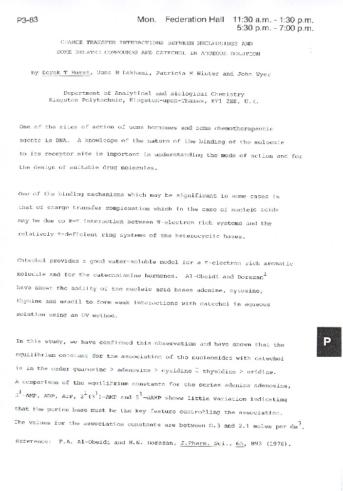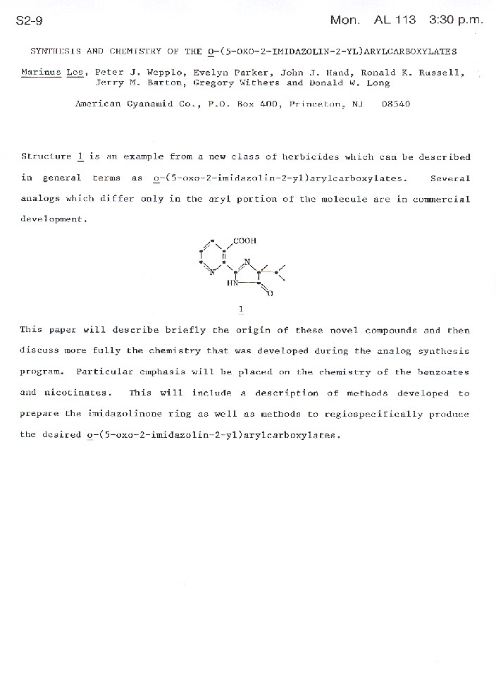 J.M. Barton, G. Withers and D.W. Long, American Cyanamid, Princeton, NJ, USA (Invited Contributed Paper) |