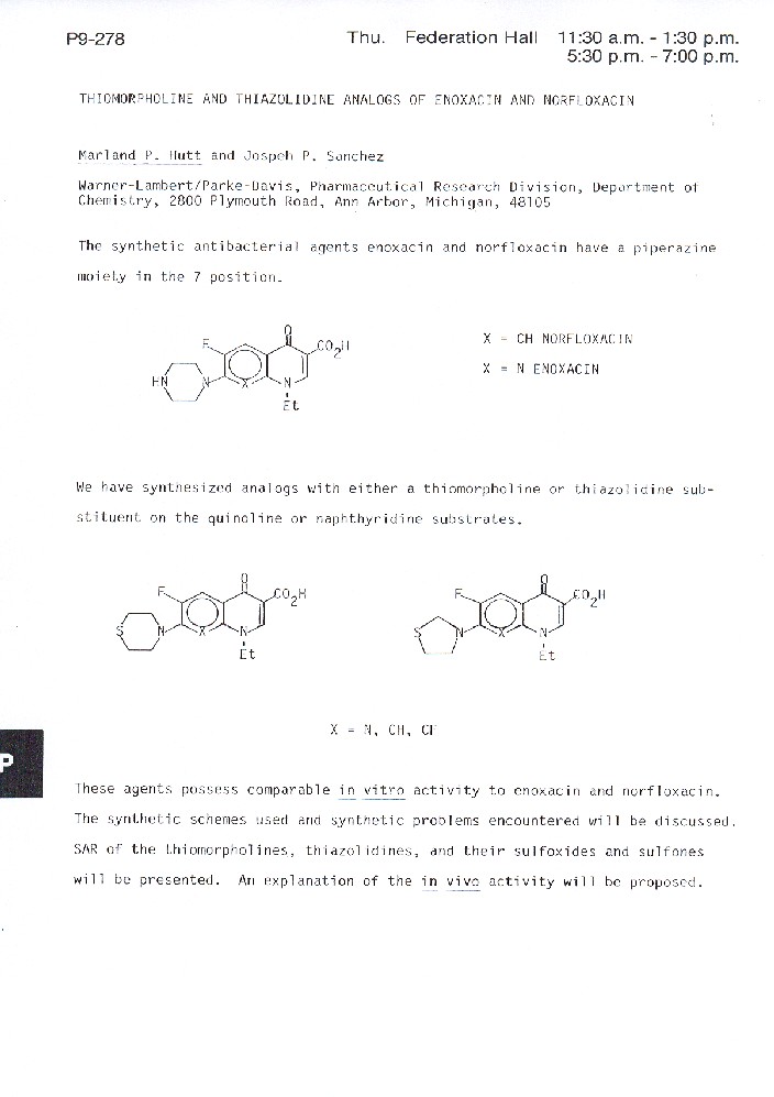 Sanchez, Warner-Lambert/Parke-Davis, Ann Arbor, MI, USA |