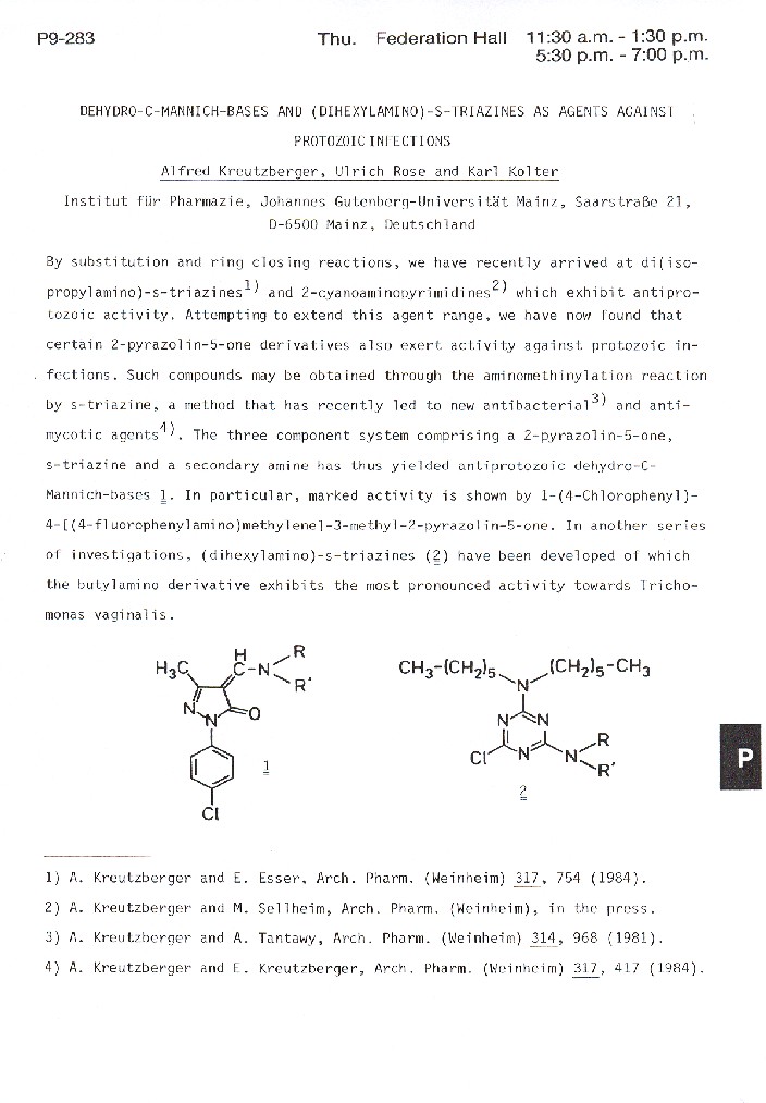 (Dihexylamino)-s-Triazines as Agents Against Protozoic Infections |
