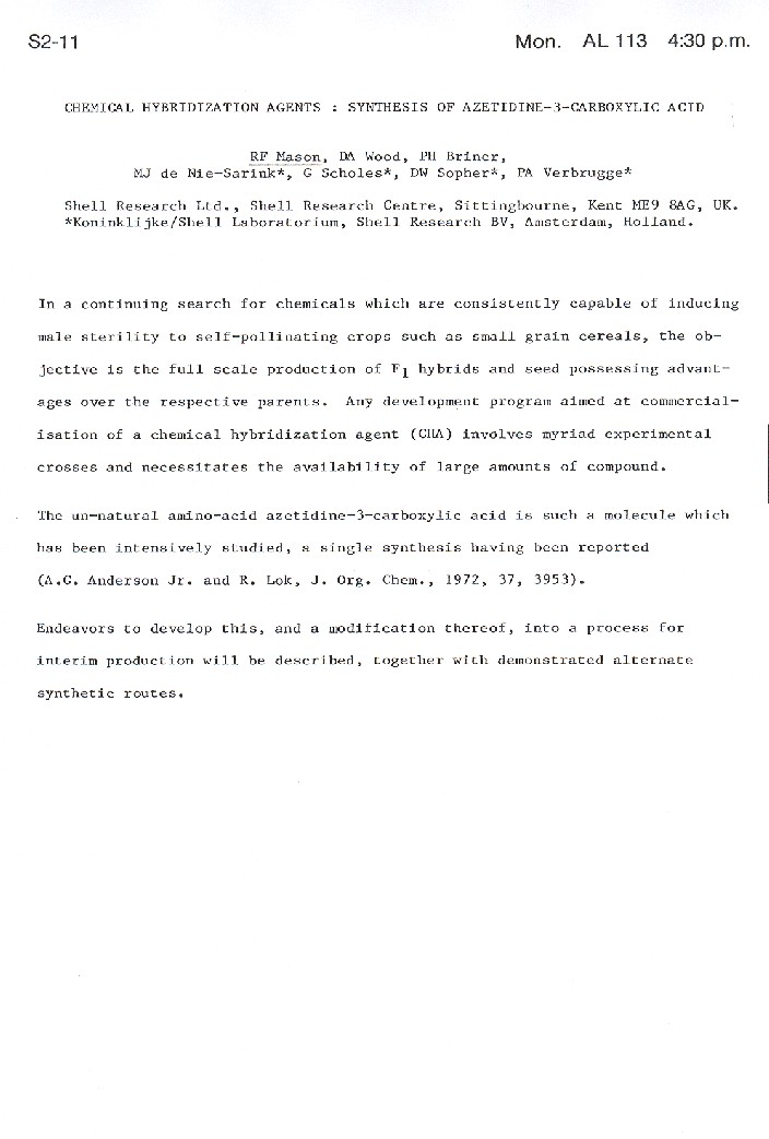 Nie-Sarink, G. Scholes, D.W. Sopher and P.A. Verbrugge, Shell Agricultural
