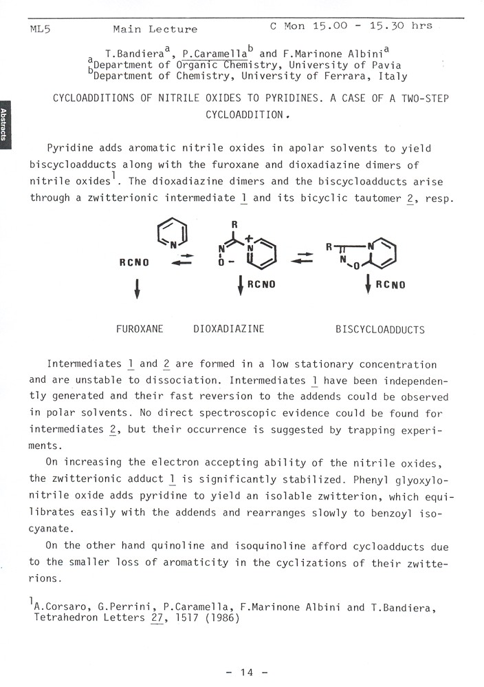 A. Liguori, Arcavacata di Rende (CS), R. Ottanŕ, G. Romero, Messina, G. Sindona, N. Uccella, Arcavata di Rende (CS), I |