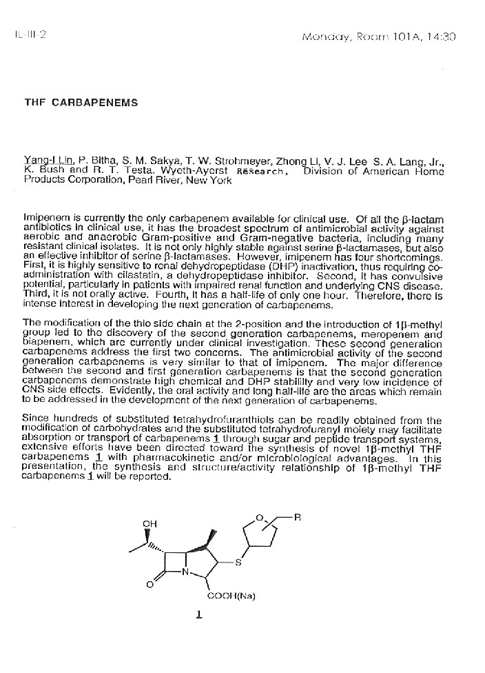 Li, V. J. Lee, S. A Lang, Jr., K. Bush, R. T. Testa, Wyeth-Ayerst Research, U.S.A
