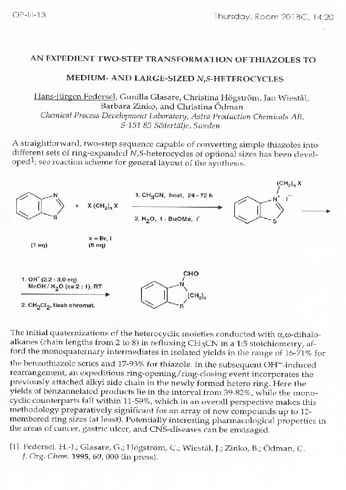 Ia: Organic Synthesis in Heterocyclic Chemistry