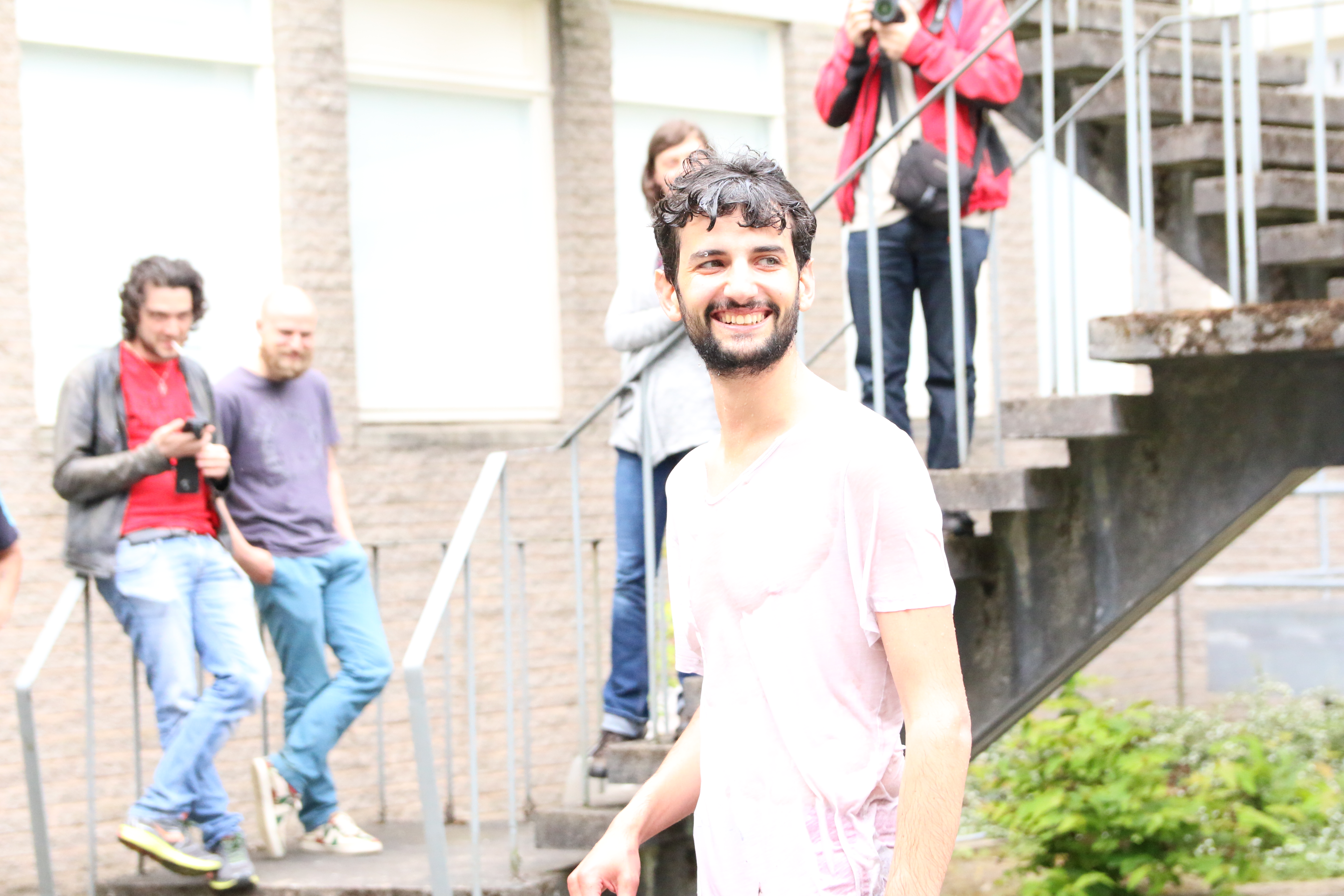 Maxime defended his PhD Thesis, “Negative Frequency at the Horizon: Scattering of Light at a Refractive Index Front” with a panel composed of Prof. Bill Unruh, the founder of the field of analogue horizon science, and Dr Donatella Cassettari. Following on getting his PhD, he was thrown into the pond in the central courtyard of the school - a St Andrews tradition!