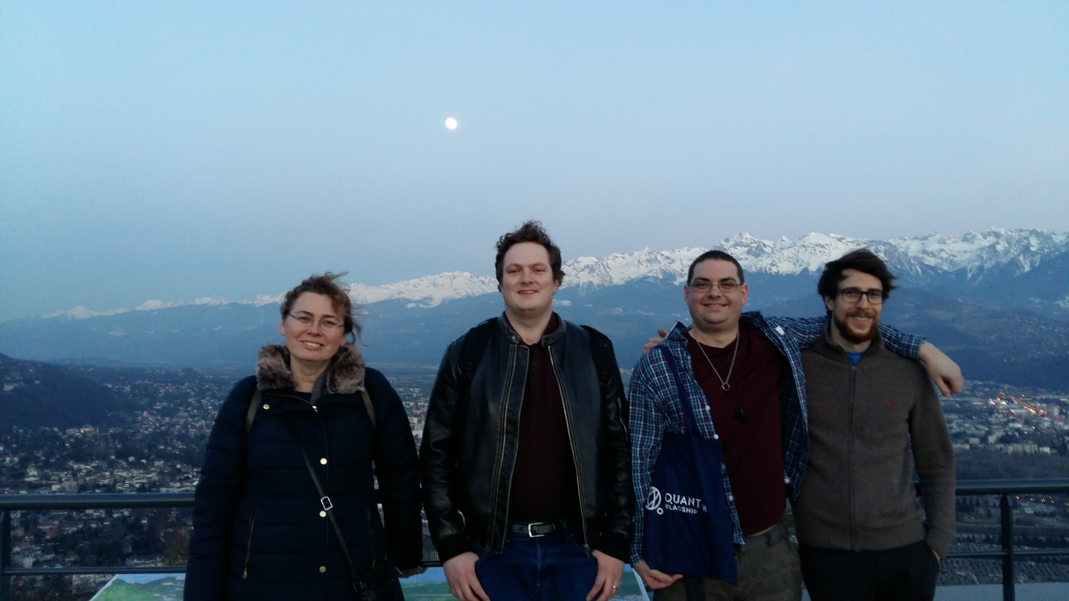 Natalia and Matt attended the first European Quantum Technologies conference in Grenoble, France. Natalia presented a talk entitled "Sub-Poissonian Photon Gun by Coherent Diffusive Photonics", and Matt presented a poster entitled "Efficient generation of sub-Poissonian states via coherent diffusive photonics". We had good discussions with PhoG collaborators David and Jacopo from Heriot Watt University.