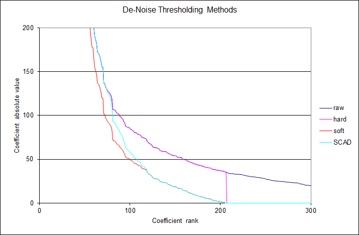 De-noising with the DWT requires two decisions. First, what threshold should be set, below which coefficients will be regarded as representing noise? Second, what algorithm should be applied to these noise coefficients to reduce their amplitude?