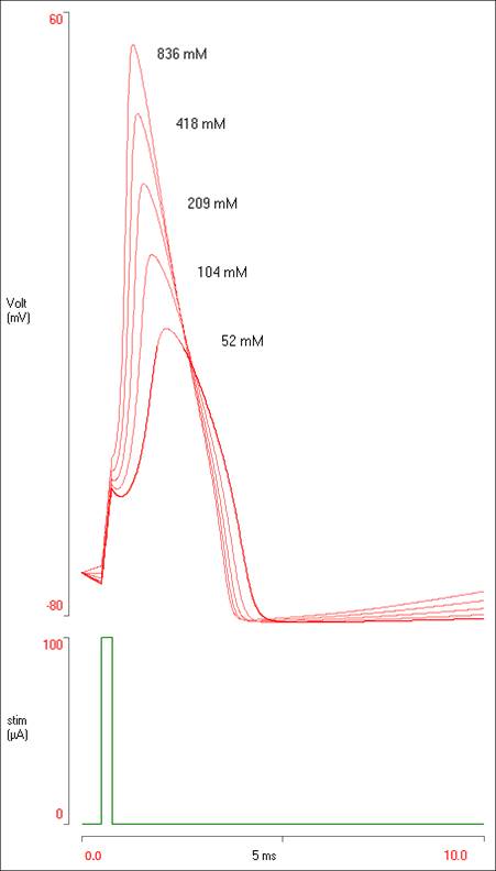 - Set the extracellular sodium concentration to 836 mM (twice the normal value).