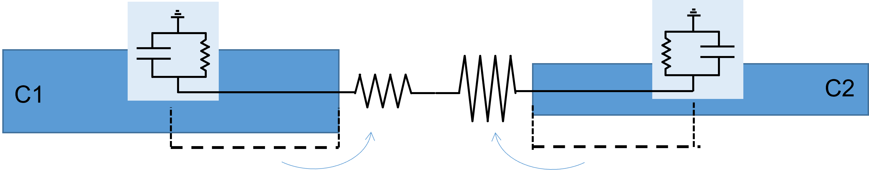 Cytoplasm is assumed to have a single user-specified resistivity which is shared by all compartments in all neurons within a particular model. The individual inter-compartment coupling resistance is calculated from the geometry of the coupled compartments, using the global resistivity value. Thus if two cylindrical dendrites are adjacent compartments, the coupling resistance between them is the sum of half of the axial internal resistance of one dendrite, plus half of the axial internal resistance of the other dendrite. An important point is that although the internal resistance is calculated from the dimensions of the dendrites (length and cross-section area), and thus is in fact internal to the dendrite, in terms of the calculation it is treated as if it were external to the compartment. This is in accordance with the key underlying concept of compartmental models - that a compartment is isopotential (and thus has zero internal resistance).