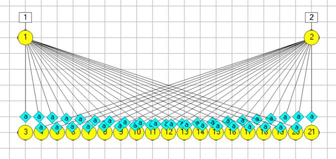 - Repeat this at a node below and between the other two neurons, so that the three resulting neurons form a V shape in the layout area.